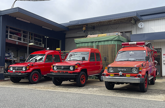 その理由は保管場所にあります。消防団向けの消防車は、雨風を防げるガレージで大切に保管しているため、錆や劣化の心配がありません。